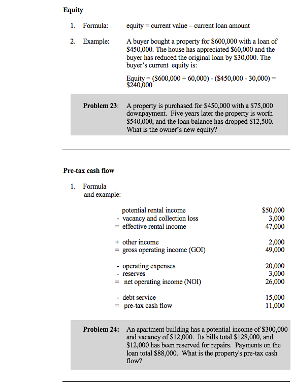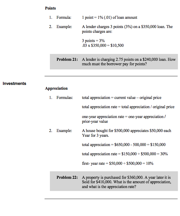 Legal descriptions / Listing agreements / Brokerage business / Sales contracts / Appraisal / Finance / Investments / Taxation / Closings